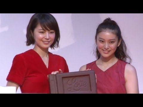 ロッテのチョコレート「ガーナ」のCMに出演している女優の長澤まさみさんと武井咲さんが8月28日、東京都内で行われた「チョコびらき 宣言セレモニー」イベントに登場した。