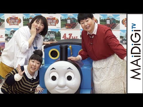 お笑いトリオ「森三中」の黒沢かずこさん、村上知子さん、大島美幸さんが1月22日、東京都内で開催された、「映画 きかんしゃトーマス とびだせ!友情の大冒険」(2018年4月7日公開)の公開アフレコイベントに登場した。