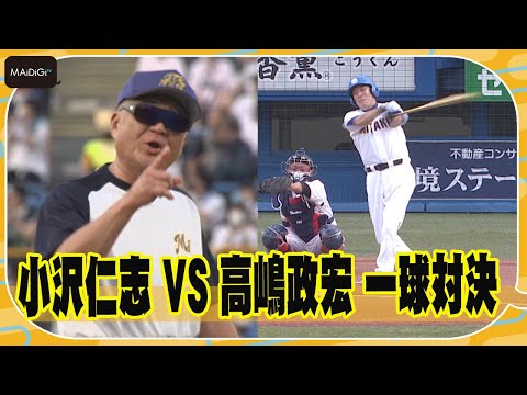 俳優の小沢仁志さんと高嶋政宏さんが8月3日、明治神宮野球場(東京都新宿区)で行われた映画「野球部に花束を」(11日公開)のヤクルトスワローズ×中日ドラゴンズ戦のセレモニーピッチイベントに登場。小沢さんがピッチャー、高嶋さんがバッターで一球対決を行った。
