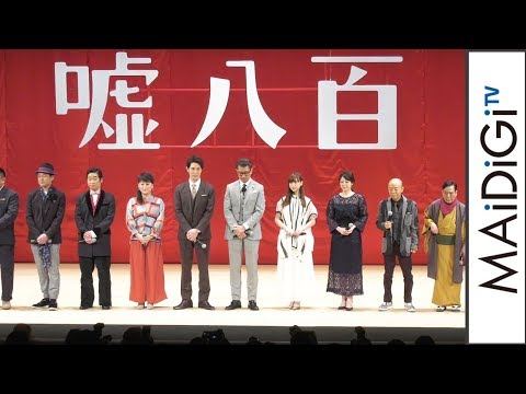 俳優の中井貴一さんと佐々木蔵之介さんがダブル主演する映画「嘘八百」(武正晴監督、2018年1月5日公開)の試写会舞台あいさつが12月17日、東京都内で行われ、中井さんや佐々木さん、友近さん、森川葵さん、前野朋哉さん、堀内敬子さん、坂田利夫さん、木下ほうかさん、塚地武雅さん、芦屋小雁さん、近藤正臣さんらが登場した。
