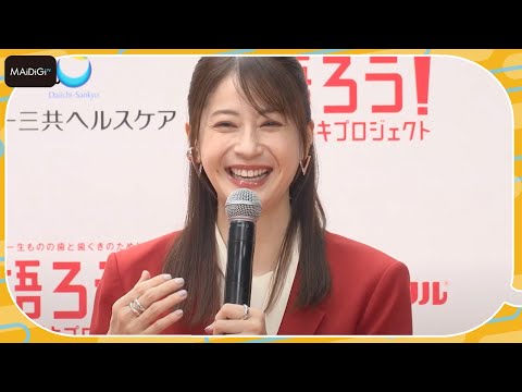 俳優の松本若菜さんが3月13日、東京都内で行われたクリーンデンタル誕生40周年記念 「語ろう!ハミガキプロジェクト」発表会に登場した。