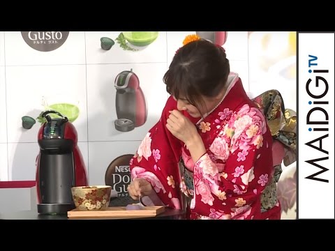 タレントの佐野ひなこさんと医師でタレントの西川史子さんが11月9日、東京都内で行われた期間限定店舗「ネスカフェ ドルチェ グスト 宇治抹茶屋」のオープニング記念セレモニーに登場した。