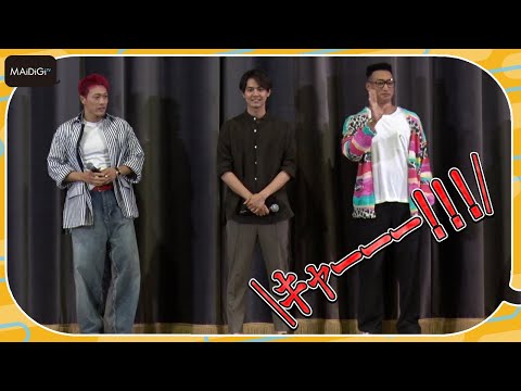 ダンス&ボーカルグループ「GENERATIONS from EXILE TRIBE」の片寄涼太さん、関口メンディーさん、中務裕太さんが7月24日、東京高等学校(東京都大田区)で行われたホラー映画「ミンナのウタ」(清水崇監督、8月11日公開)の真夏の学生試写会に登場した。
