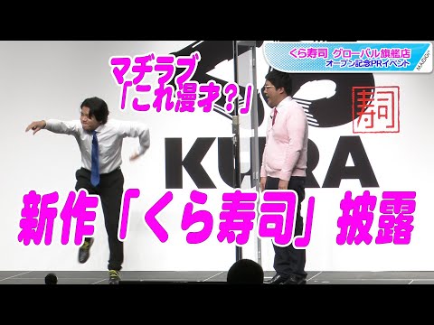 お笑いタレントの陣内智則さんとお笑いコンビ「マヂカルラブリー」(マヂラブ)が4月21日、東京都内で行われた「くら寿司」のグローバル旗艦店オープン記念PRイベントに出席。マヂラブの2人は新作漫才「くら寿司」を披露した。