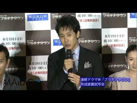俳優の大泉洋さんが17日、WOWOWで19日にスタートする連続ドラマW「プラチナタウン」の東京都内で開かれた第1話完成披露試写会に、共演の檀れいさん、渡部篤郎さんとともに出席。エリート商社マンから財政危機となった故郷の町長に転身、奮闘する主人公を演じた大泉さんは、「町長なんて初めてで大変ありがたい役でした」とあいさつすると、渡部さんは「とってもカッコよかったですよ。路線変えようとしてる?」とチクリ。「いやいや。別に変えようとは......」と照れ笑いの大泉さんは、「僕の北海道のバラエティーを見せたいよ!」と路線変更をキッパリ否定した。