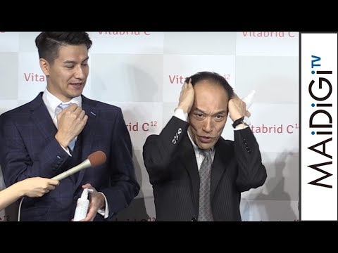 元衆院議員でタレントの東国原英夫さんが8月14日、東京都内で行われた商品発表会に登場した。この日は、2014年6月に日本に上陸した“塗るビタミンCパウダー”「ビタブリッドC」の新商品の頭皮ケア商品「ビタブリッドCヘアー トニックセットEX」の発表会。東国原さんは、同商品の宣伝担当執行役員を務めている。ほかにタレントのJOYさん、サッカーJリーグ女子マネジャーでモデルの佐藤美希さん、サッカー指導者の奥寺康彦さん、サッカー解説者の福田正博さん、フリーアナウンサーの倉敷保雄さんも出席。東国原さんが、同商品の使用前と使用後の写真を比較して紹介した。