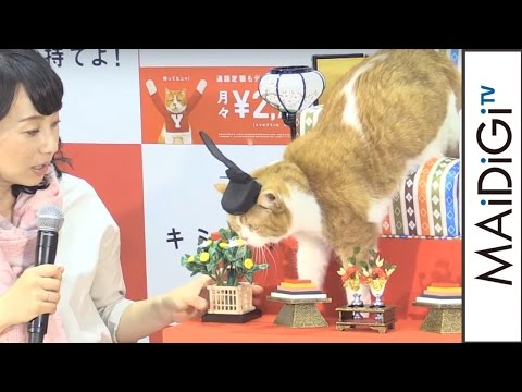ソフトバンク「ワイモバイル」の新CM「素晴らしいワイモバイル 話題のスマホ」編が3月3日から放送されることを記念したイベントが同日、東京都内で行われ、同社CMに出演しているネコの「ふてニャン」がひな祭りにちなんでお内裏(だいり)様の扮装(ふんそう)を披露。ゲストとして登場した俳優の石田純一さんと東尾理子さんをメロメロにした。