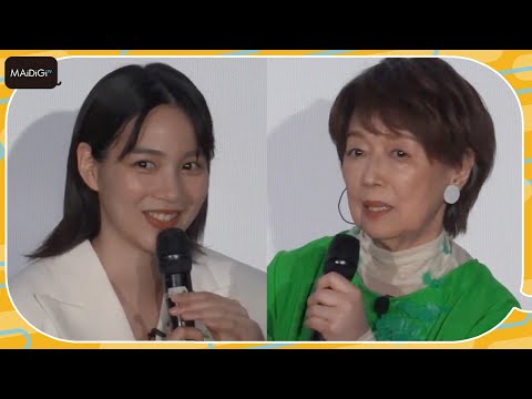 俳優の宮本信子さんとのんさんが4月18日、東京都内で行われた映画「スーパーの女」の上映記念登壇イベントに登場した。