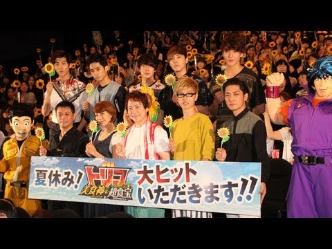 島袋光年さんのグルメマンガが原作の劇場版アニメ「劇場版トリコ 美食神の超食宝」が7月27日、公開初日を迎え、主人公・トリコ役の置鮎龍太郎さんら主要キャストとエンディング主題歌を担当した韓国の人気バンド「FTISLAND」が登場。巨大なアメ細工のひまわりも用意され、置鮎さんは花言葉の「情熱」にちなみ、「僕が今情熱を傾けているのはトリコです! 次の劇場版もやる気満々なので、ぜひヒットしてほしい!」と力を込めた。【続きは】http://mantan-web.jp/2013/07/27/20130727dog00m200002000c.html