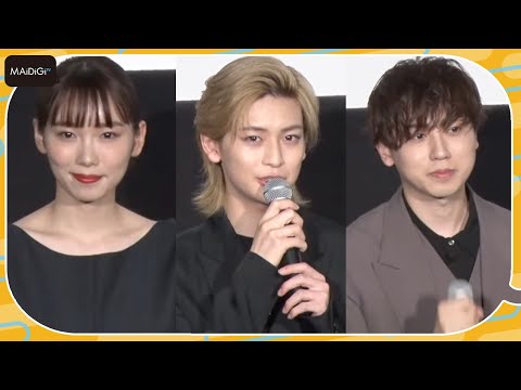 俳優の高橋文哉さんと飯豊まりえさん、声優の梶原岳人さん、島崎信長さん、優木かなさんが6月17日、東京都内で行われた劇場版アニメ「ブラッククローバー 魔法帝の剣」の公開記念舞台あいさつに登場した。