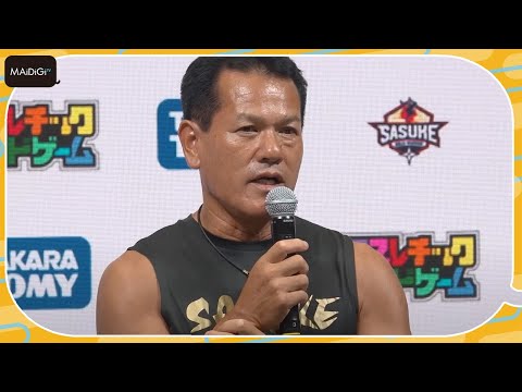 青木マッチョ、“ミスターSASUKE”とゲーム対決!「俺にはSASUKEしか…」と名セリフも 「アスレチックランドゲーム SASUKE」発売記念ステージ